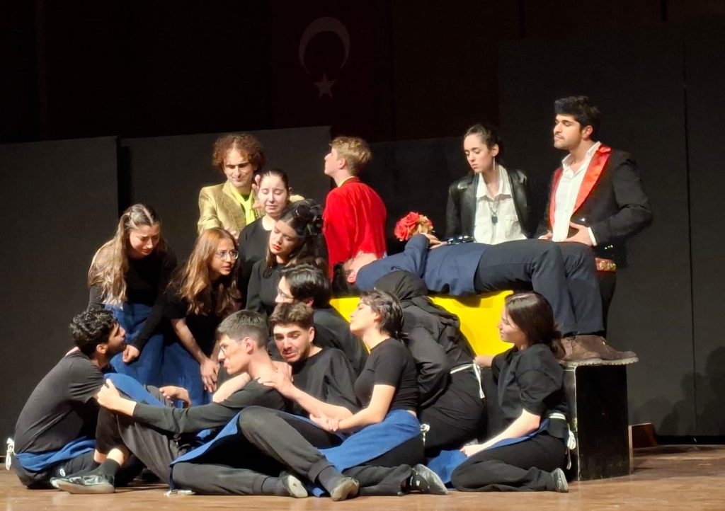 Bir de öne çıkan bazı performanslara değinmek gerekiyor. Madem Arturo Ui’nin Önlenebilir Yükselişi’ni konuşuyoruz, Arturo Ui’den başlamalı. Aziz Taha Alver, Ui’nin serseriliğini ve itibar arayışını iyi meczeden bir tavır geliştirebilmiş. Bir anlamda karakteri giyinmiş. The Man Who Sold The World’de billurlaşan Kurt Cobain esrikliği ile Rumble Fish ve Barfly’daki Mickey Rourke karizmasını meczederek Ui’ye yedirmiş. Ne diyorlar, sahne ışığı var. Işığı için spota ihtiyacının olmadığını düşündüren ikinci bir performansı Ernesto karakteriyle Muhammed Enes Karaçizmeli sergiledi. Yüzünde bazen Rumble Fish’teki Matt Dillon bazen de Reservoir Dogs’taki Michael Madsen esintileri gördüm. Karakteri görünür kılan bir enerjisi var. Farklı rollerde birden fazla sefer gördüğüm fakat değişik açılardan takdir ettiğim isimlerin bir kısmını zikredeyim. Ege Ünverir, Genç Dogsborough karakterine insanın yer yer sinirleriyle oynayan bir mizahi derinlik katmış. Bunun salondaki sonucu şu: Yükselen kahkahalar. Bir oyuncu bir şeyin tekrar edileceğinin anlaşıldığı durumda dahi hemen her defasında seyirciyi güldürebiliyorsa bu başarıya işarettir. Karakteristik bir yüzü ve ses tonu var. Genç Dogsborough karakterinin haricinde sahnede olduğu bölümlerde ses tonu özellikle dikkatimi çekti. İyi bir seslendirme sanatçısı potansiyeli de taşıyor. Benzeri bir düşünce zihnimden Umay Yıldırımoğlu’nun canlandırdığı karakteri izlerken de geçti. Hani bazı dizilerde diline vuran (Bkz. Avrupa Yakası, Makbule) karakterler olur, özellikle bir sahnede öylesine bir dilbazlığı çok kıvamında çok güzel yaptığını gördüm. Benzer bir dilbazlığı Esma Ünal da özellikle bir sahnede başarıyla yaptı. O an, oyuncunun gerçek anlamda göründüğü ve kumaşının kalitesini ele verdiği an oluyor. Arda Santurkaya da farklı karakterlere bir neşve kazandırmış. Bu liste uzatılabilir. Özel olarak anılmaya değer performanslar bunlarla sınırlı değil. Bu tablo doğru karaktere doğru ismin seçilmesindeki başarıyı gösteriyor. Reji-Dramaturji’de oyuncu olarak kadroda yer alan isimleri görüyoruz: Bahadır Sözen, Beyza Nur Altın, Ege Ünverir, Muhammed Enes Karaçizmeli, Uğur Atılgan, Ulaş Adiyan. Karar verirken artan isim sayısı sanılanın aksine zorluklar çıkarır ve iyi yönetilmezse bir kargaşaya da sebebiyet verebilir. Bu işte öyle olmamış. Bunda, Dış Göz olarak afişte ismi yer alan Beyza Nur Altın’ın büyük rolü olduğunu sonradan öğrendim. Meğer bu “dış göz” işi, TİMİS’in yönetmen tiyatrosu yerine tercih ettiği yolun ifadesiymiş. Öyleyse, oyunun yorumuna katkı sağlama ve pürüzlerden arındırma işini yapan isim olarak Altın (ve adını bilemediğim, oyunu geliştiren eski TİMİSçiler de) özel bir tebriği hak ediyor. Kostüm bir üniversite topluluğuna göre oldukça iyiydi. Beyaz Nur Altın, Gülce Ekin Gültekin ve Gülnihal Arpacı tebriği hak ediyor. Keza dekor da oyunu anlamlı şekilde görünür kılacak şekilde düzenlenmiş ki bu da kolay iş olmasa gerek. Birçok oyunda, çoğu zaman hikayeye katkısı olmayan, dahası karakterlerin ve oyunun önüne geçen dekoratif müdahaleler gördüğüm için bunu da hassaten belirtmek istedim.