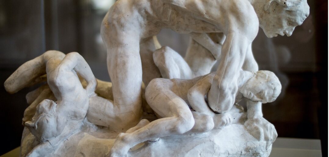 Rodin (1840-1917), Ugolino eserinde açlıktan oğullarını yiyen bir babanın heykelini yapar. Ugolino, açlığın verdiği dehşetle dizleri ve ellerinin üzerinde çömelmiştir. Rodin, Ugolino’nun başını eğmemiş, omuz ve sırt hizasında tutmuştur. Yüzünde acı ve öfke yoktur; açlığın dehşetiyle yıkama uğrayan, boş bakışlarıyla çılgına dönmüş bir ifade vardır. Bedeninde belirginleşen kaslar onu bir insan bedeninden bir hayvan bedenine dönüştürür. Açlığın insani edimlerden uzaklaştırdığı düşüncesi Ugolino heykelinde vücut bulmaktadır. Ugolino’nun çocuklarının vücut hatlarında da belirgin olan kasların olması çocukların Ugolino’nun gözüyle anlatıldığını resmetmektedir. Dolayısıyla Rodin bize farklı bakış açılarıyla açlığın dehşetini yaptığı heykelle somutlaştırmaktadır.